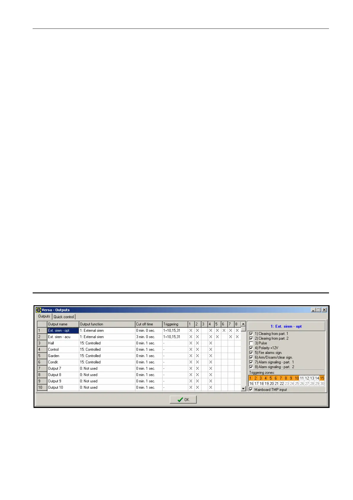 Fig. 10. "Versa – Outputs" window in the DLOADX program.