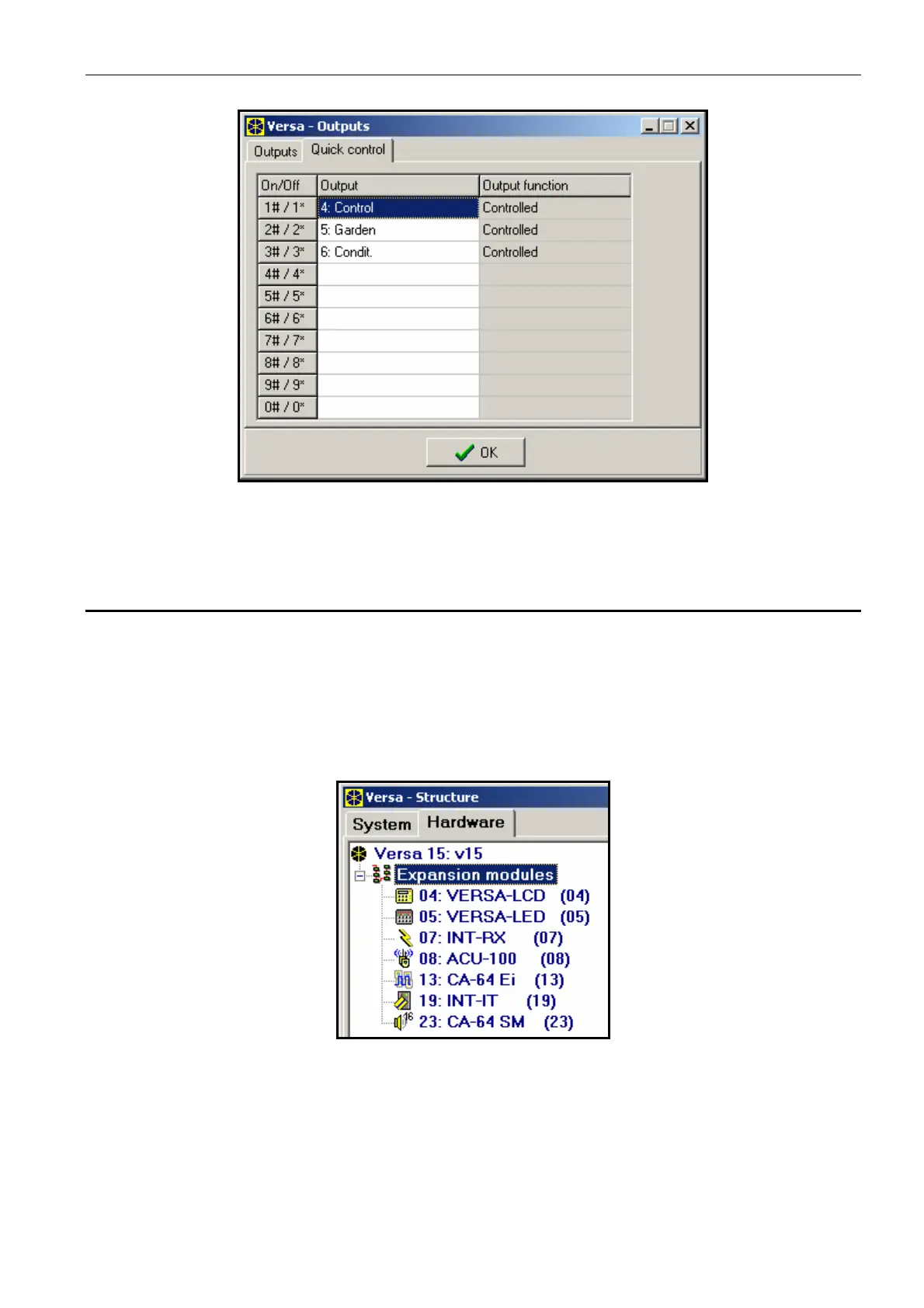 programmed in the "Versa – Structure" window, "Hardware" tab, after the required device is