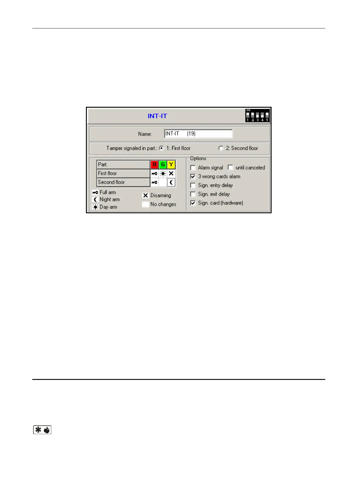 green / yellow LED is lit. One of the three armed modes can be enabled in the partition,