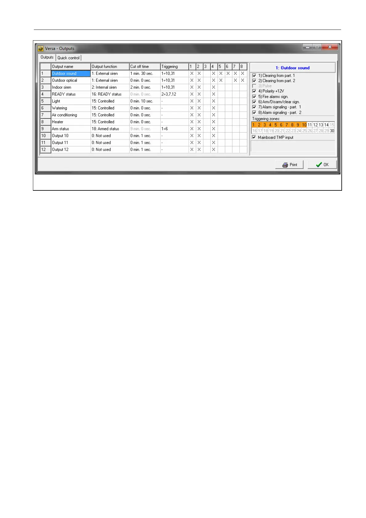 Fig. 10. DLOADX program: “VERSA – Outputs” window.