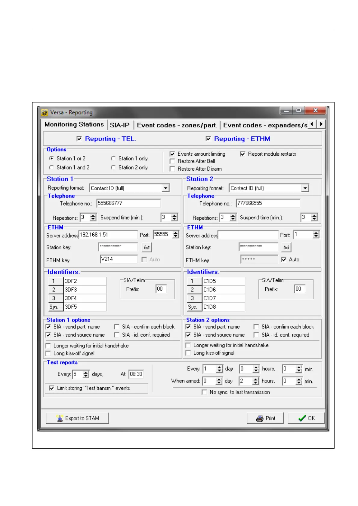 Reporting format – format in which event codes are sent to the monitoring station.