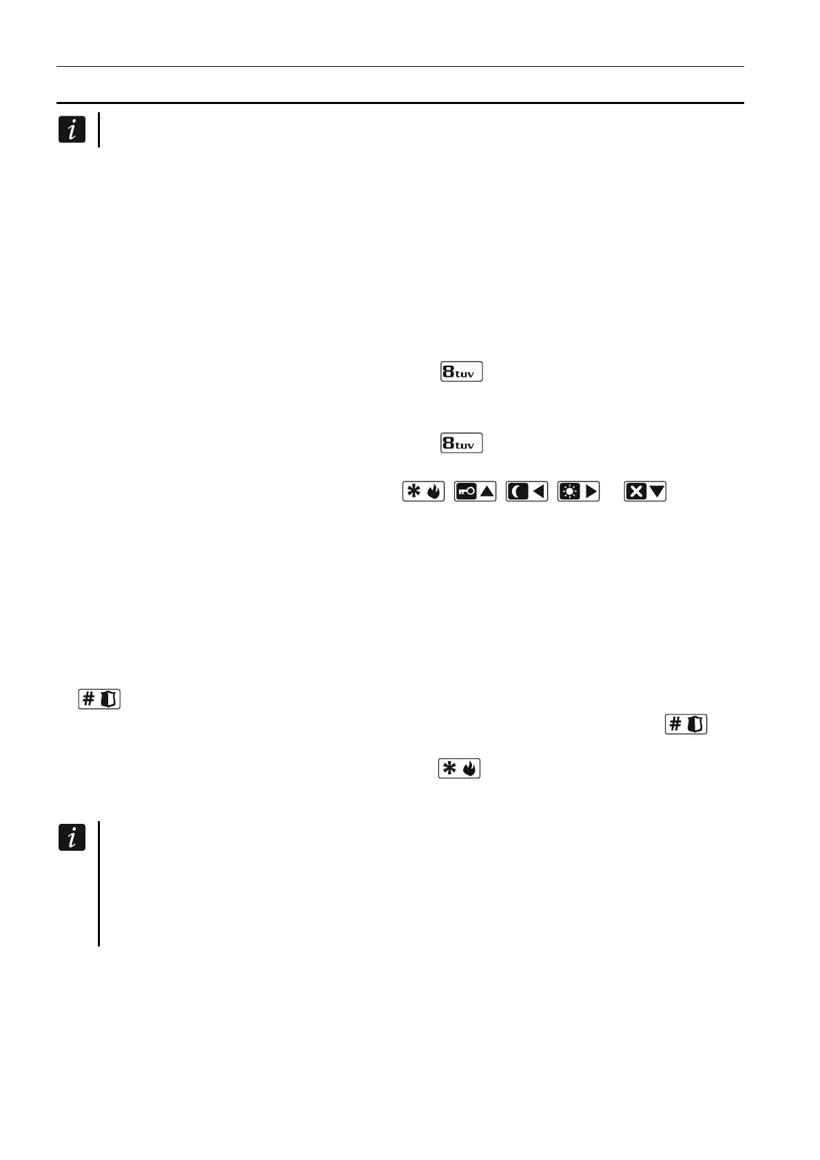 2 long beeps – incorrect code or pressing the , , , or key, if not