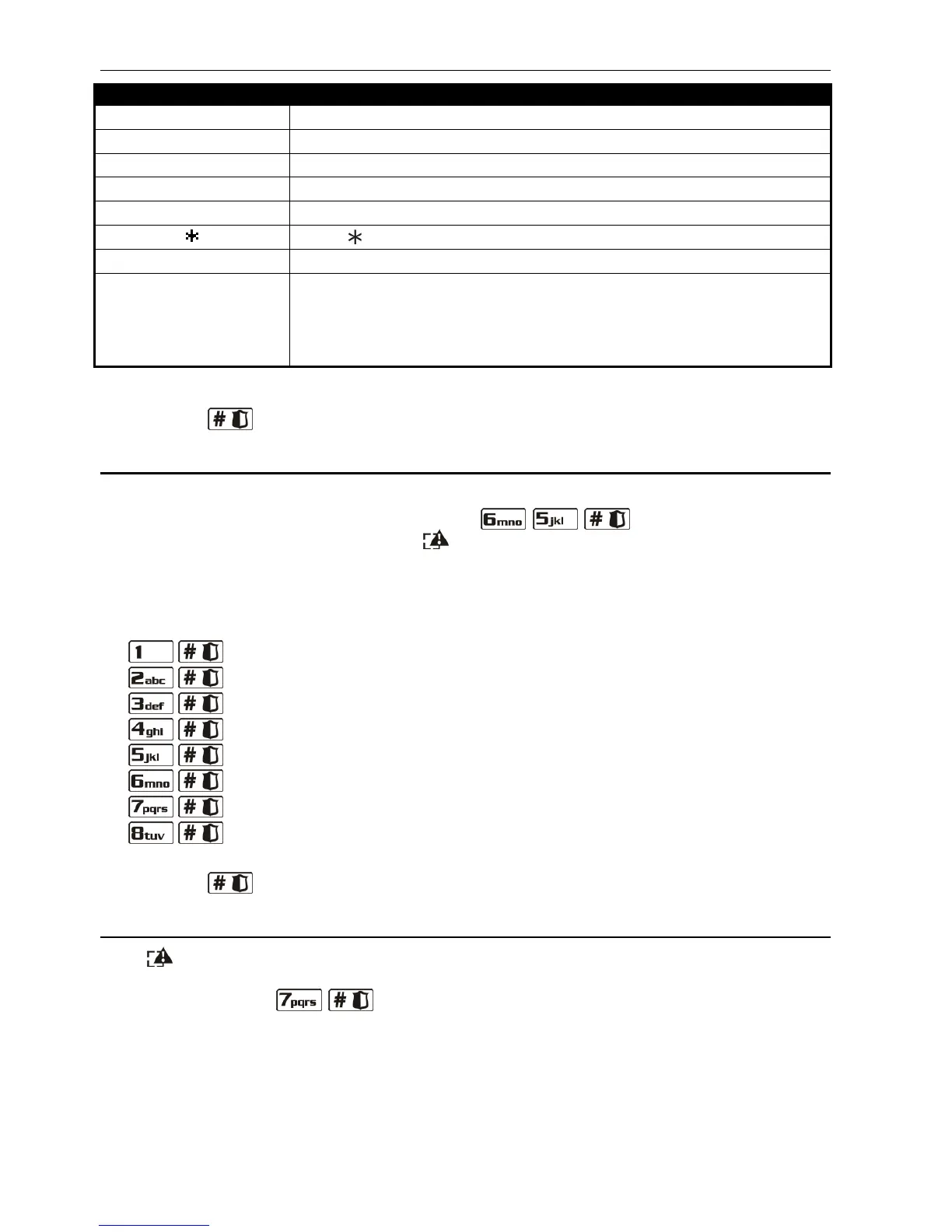 1. Enter the user menu and press in turn the keys. 2 short beeps will