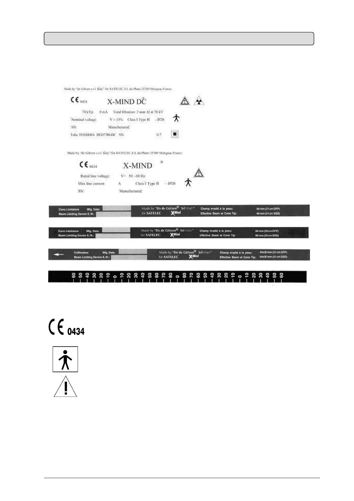 The identification tags on the tubehead, on the timer and on the cone indicate the model name,