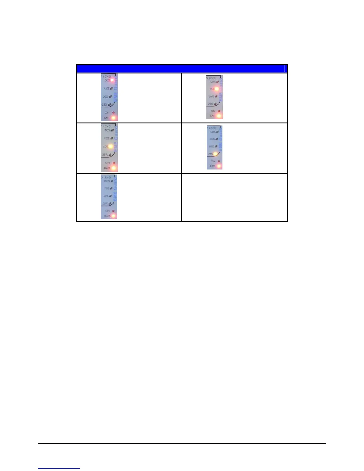The field level lights (25%, 50%, 75% and 100% lights ) enable the display of an