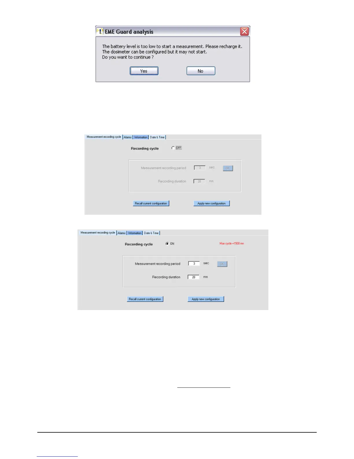 Ö Recording duration: total time (in minutes) of the measurement recording cycle. The