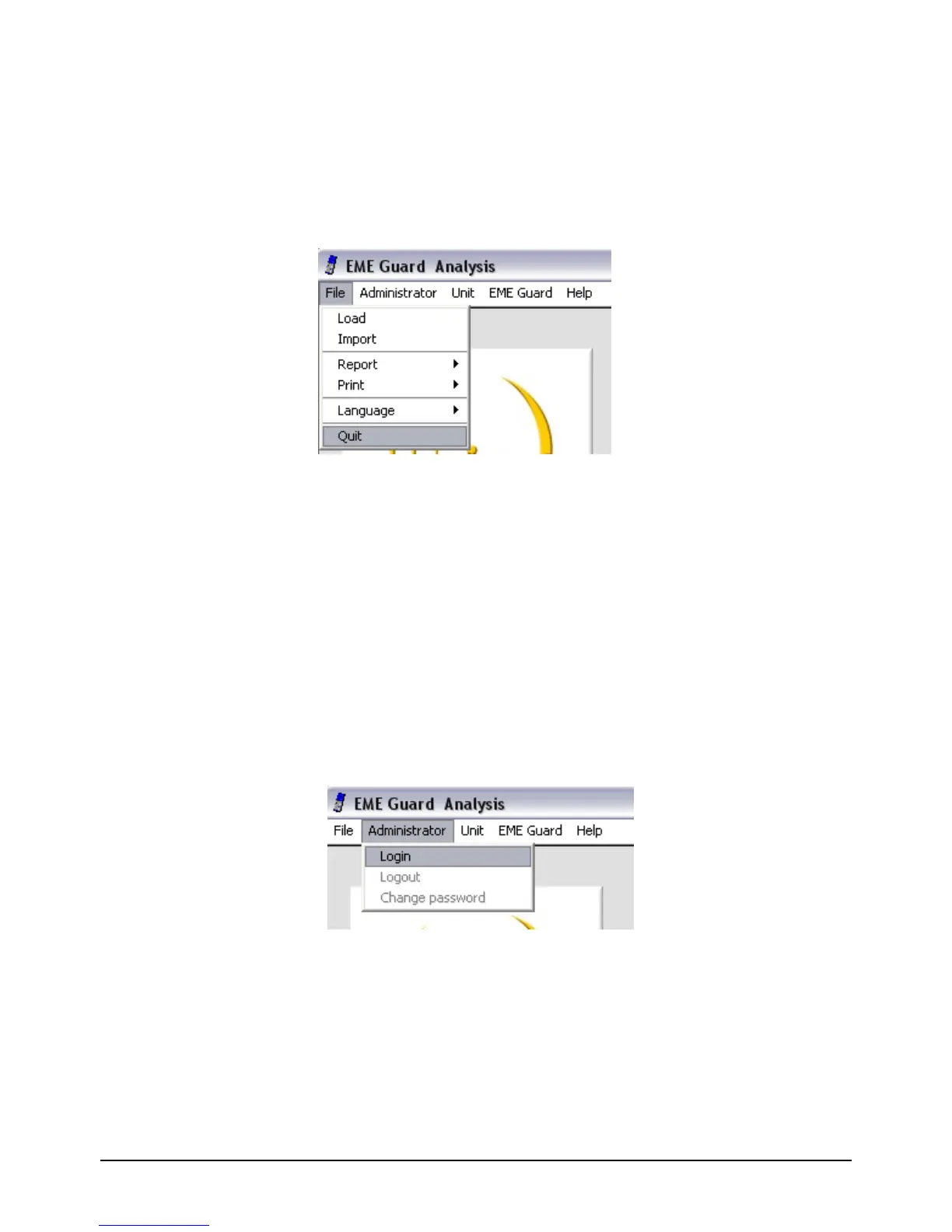 administrator mode password on first use of the software. The user will have to enter this