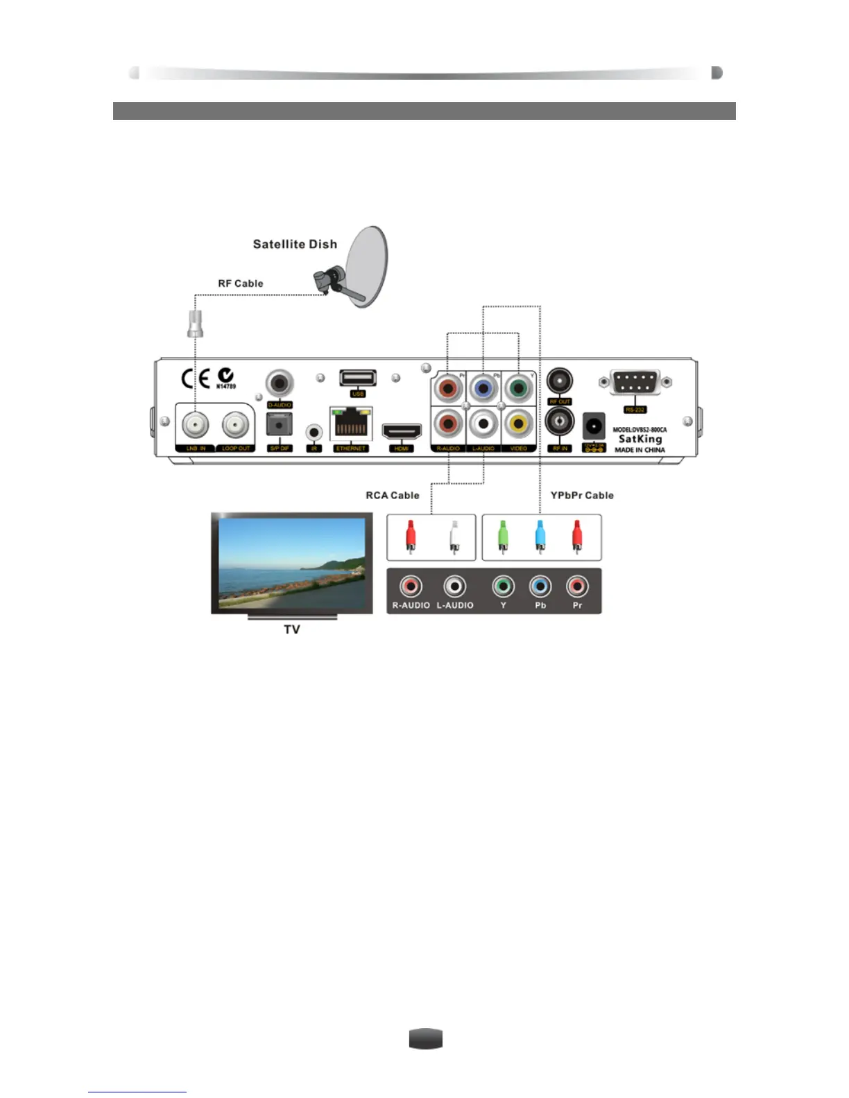 1. Connect LNB IN port on the receiver to satellite dish with an RF cable.