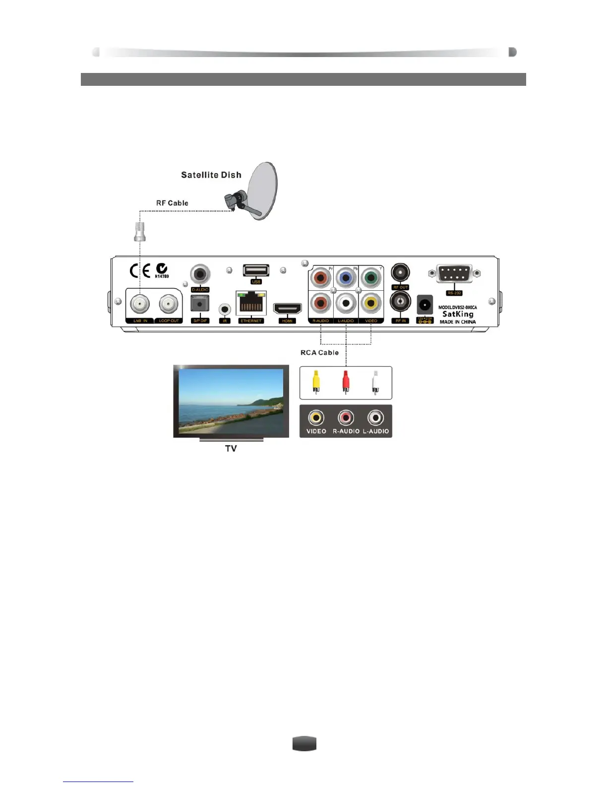 1. Connect LNB IN port on the receiver to satellite dish with an RF cable.