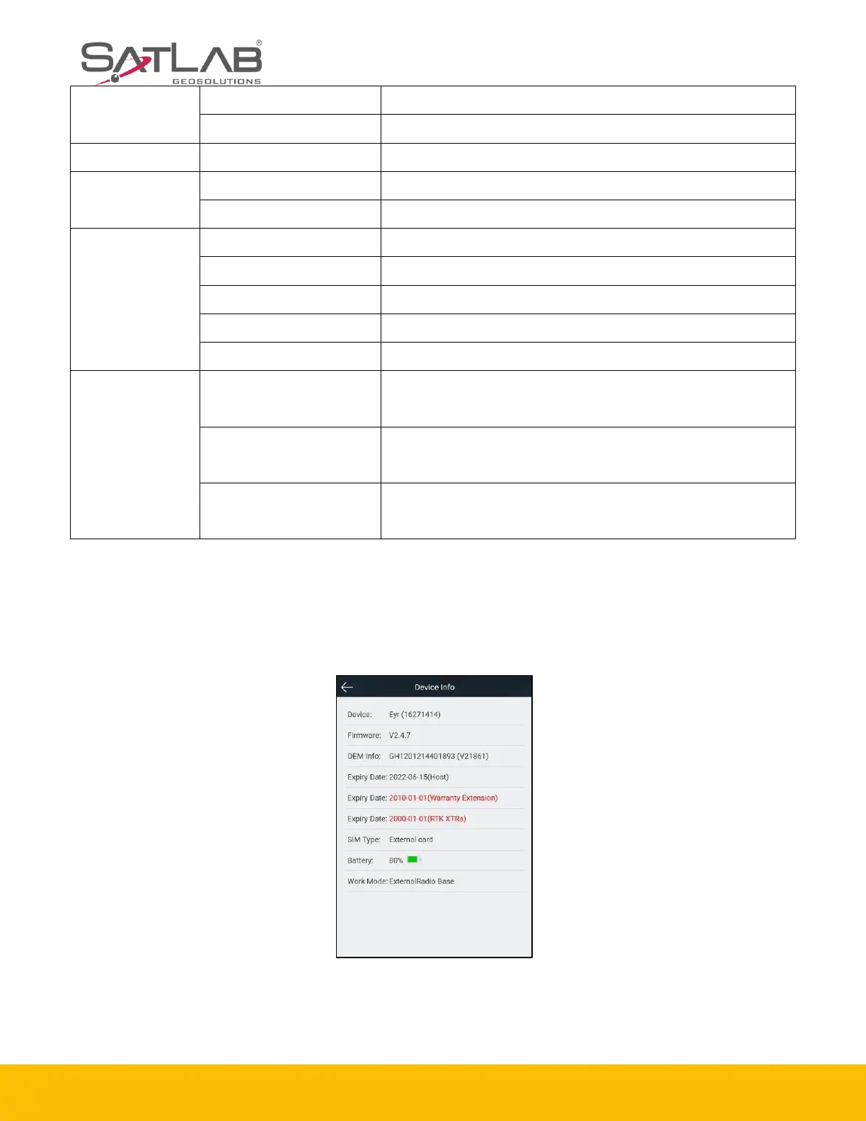 Includes the main information about the device: device model, S/N, firmware version, OEM info,