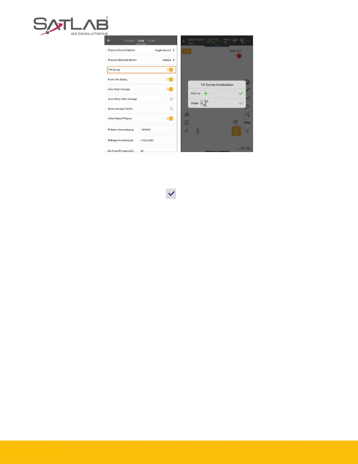 and the tilt survey icon becomes illuminated. This means that the tilt survey initialization is now