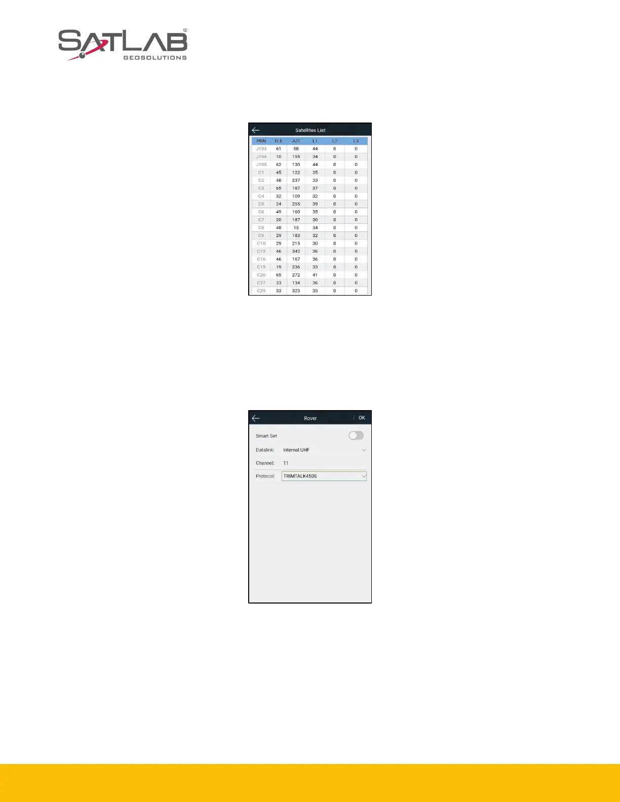 Shows the satellite’s tracked information.