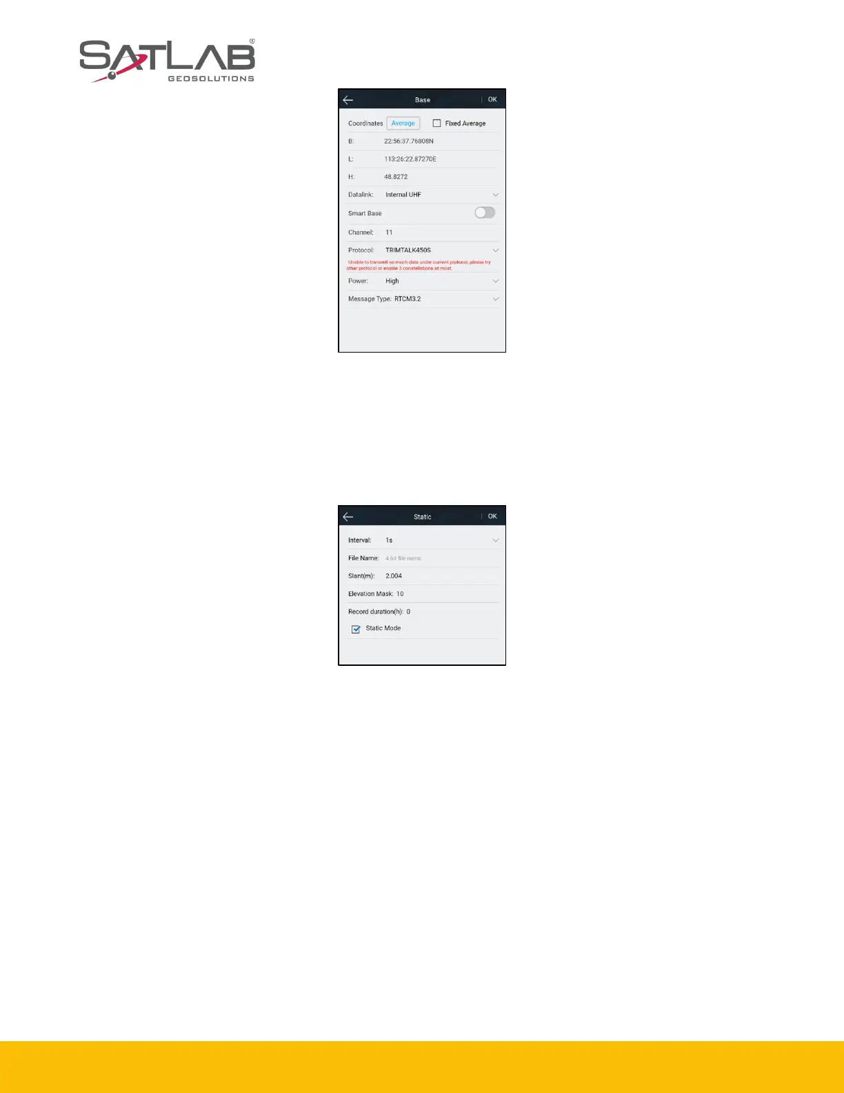 Note: After ticking Static Mode, you can only cancel it in the base rover setting interface.