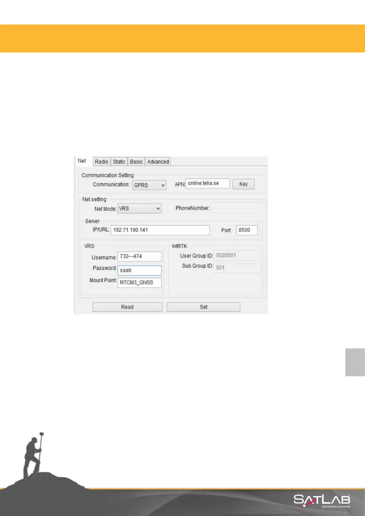 Net: Performing RTK over internet by internal 3G modem is set in this tab. From 3G connecon