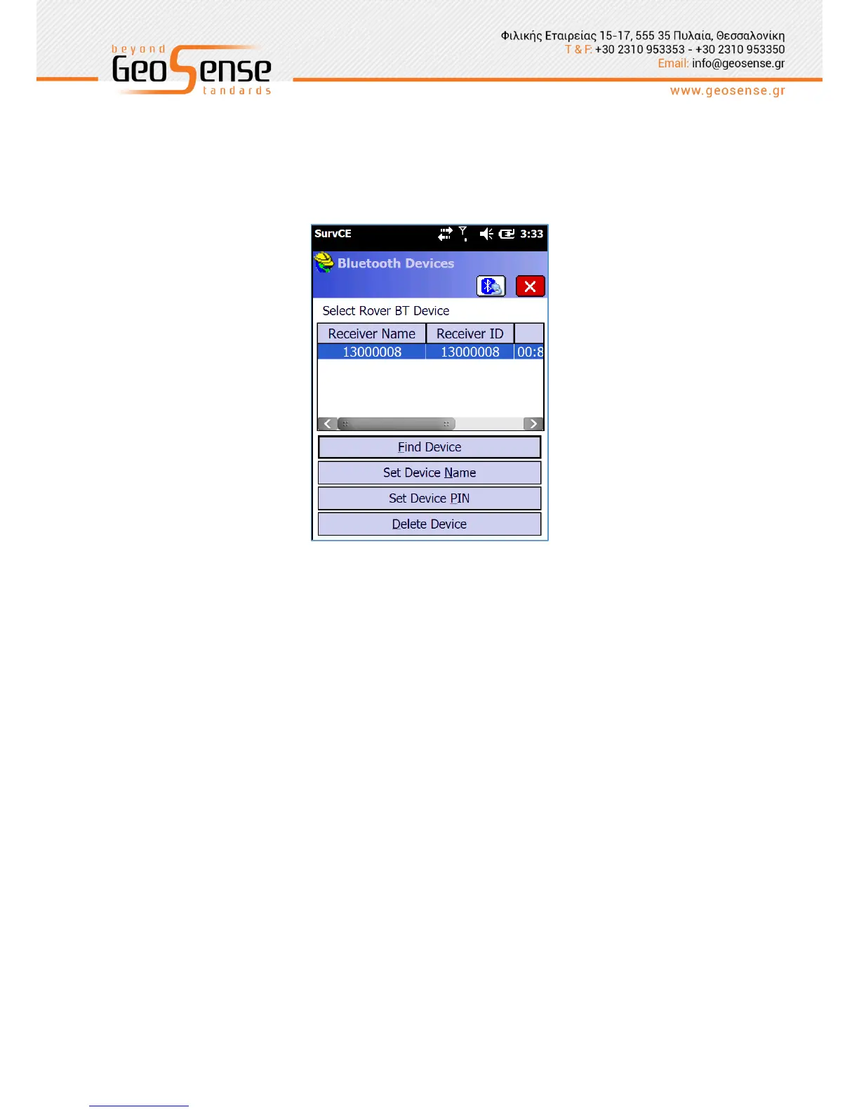 Comms tab enables Bluetooth connection to the receiver. Click on ‘Find Device’ then select