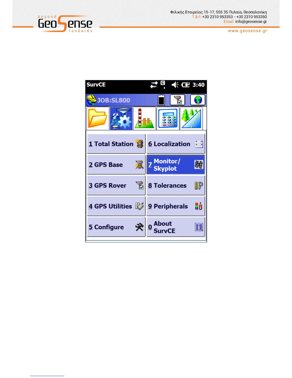 Figure 3-11 SurvCE Monitor/Skyplot Menu page