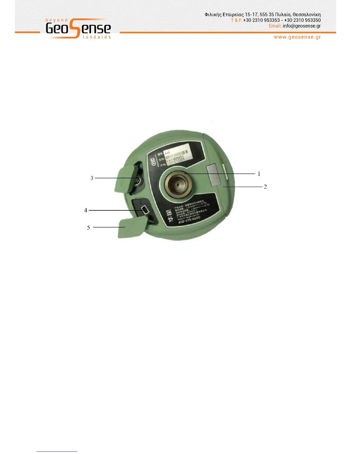 1. 5/8 thread mounting screw 2. Battery compartment 3. 5 pin lemo interface