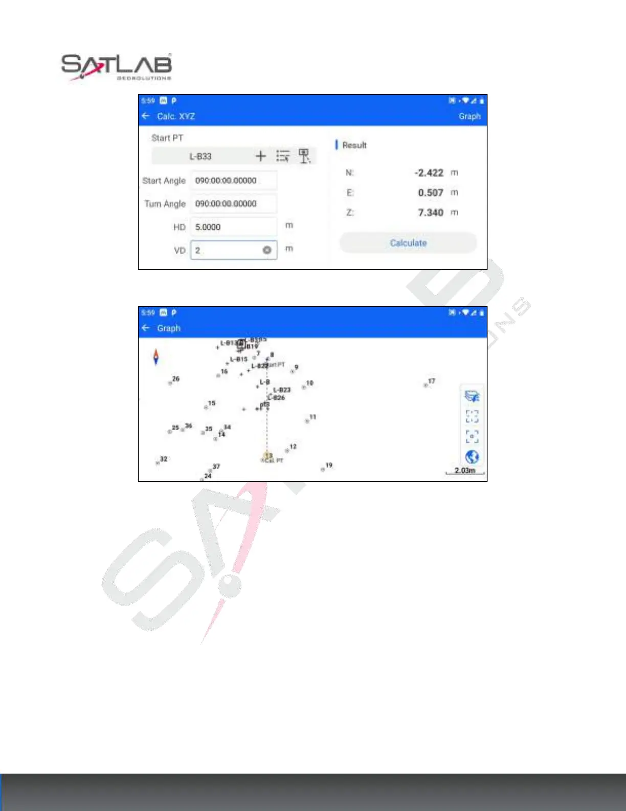 endpoint relative to the start point will be displayed after calculation. (horizontal distance between the start point