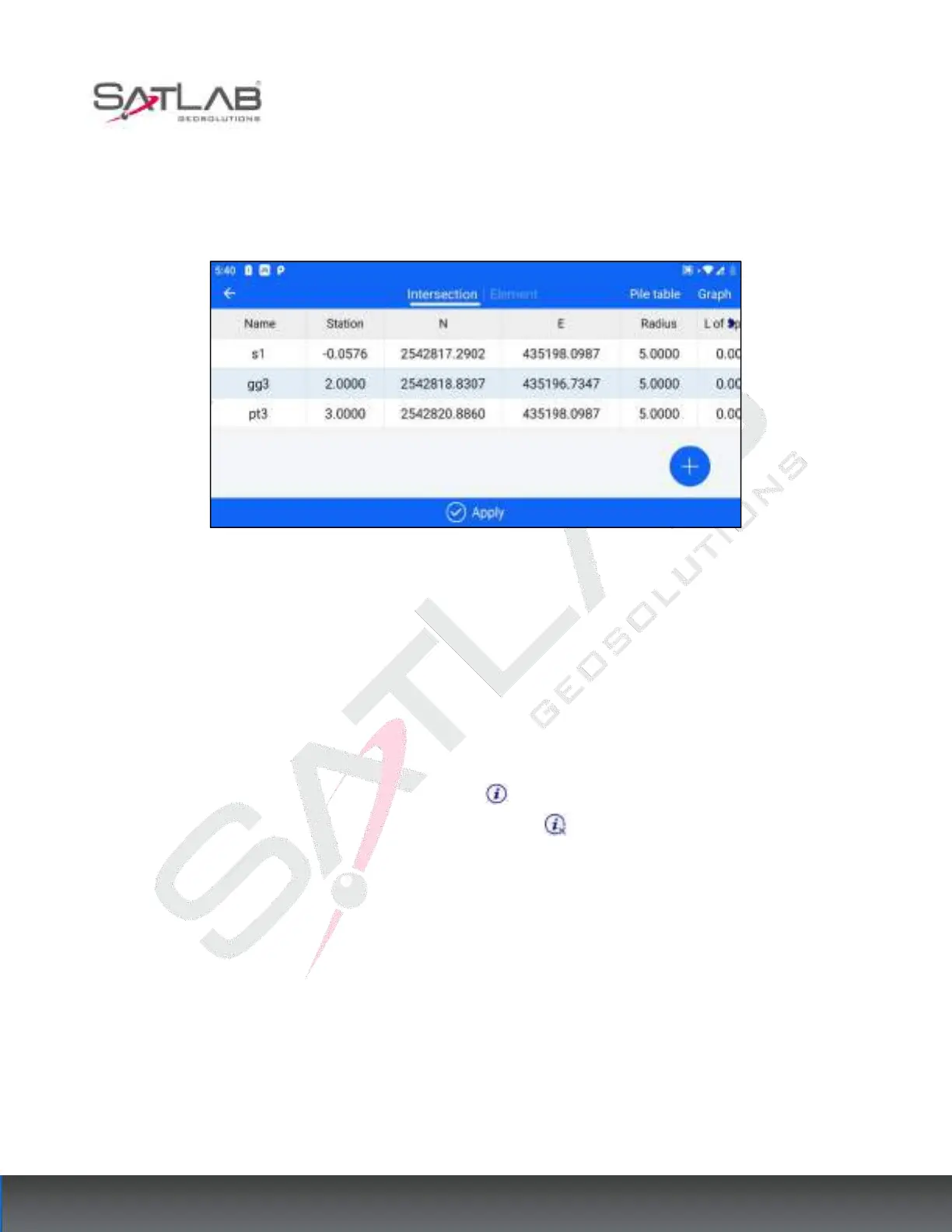 [Add]: Click the "+" button to add the intersection data, get the intersection name, N, E, intersection mileage