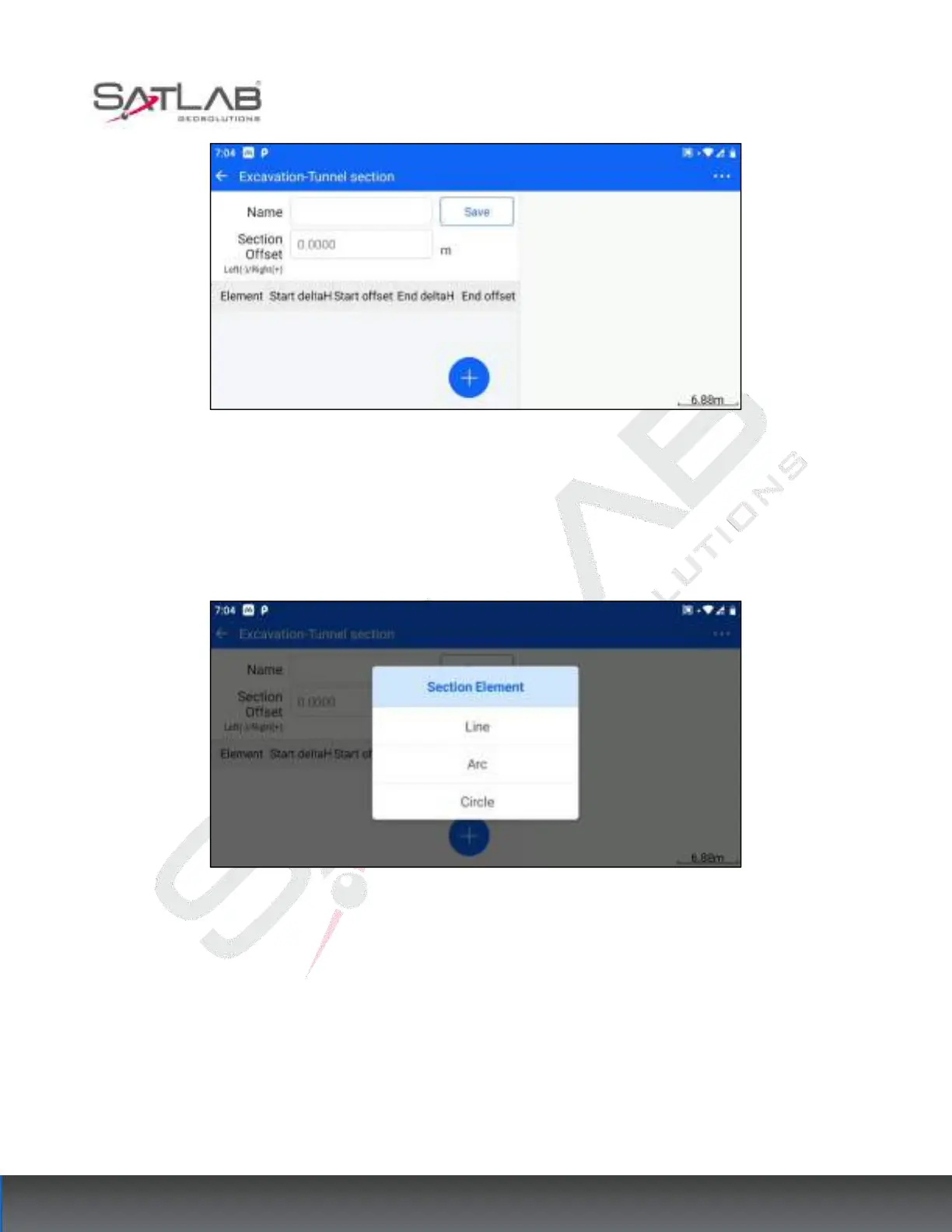 4. In the tunnel section design interface, click the hover "+" button to bring up the section line element selection