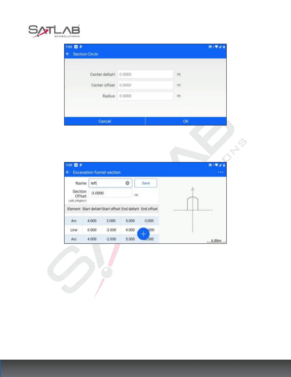 will show the relative position of the section line element and the tunnel centerline.