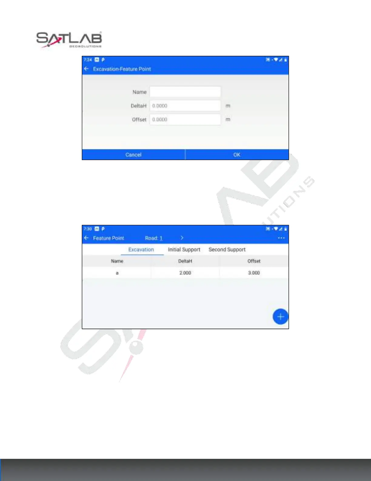 to be set are point name, elevation difference, and offset distance.