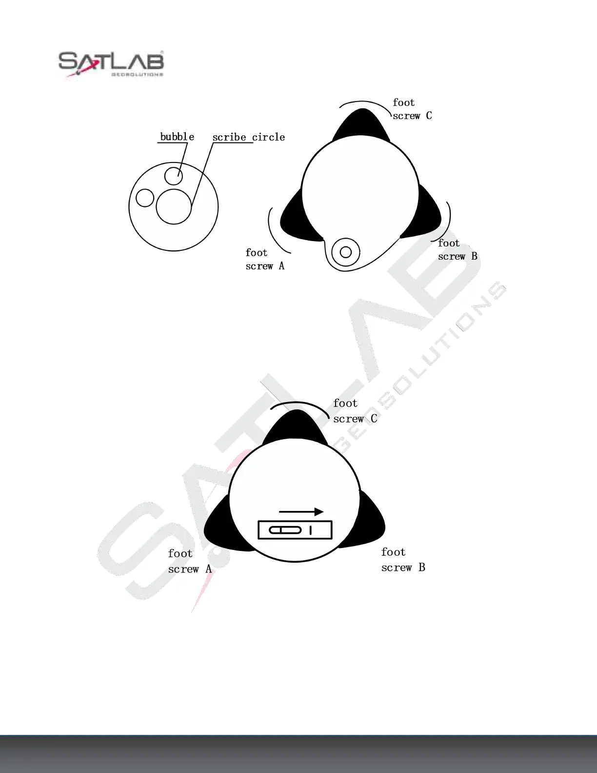 line defined by screws A and B. Adjust screws A and B to position the bubble in the center of the level.