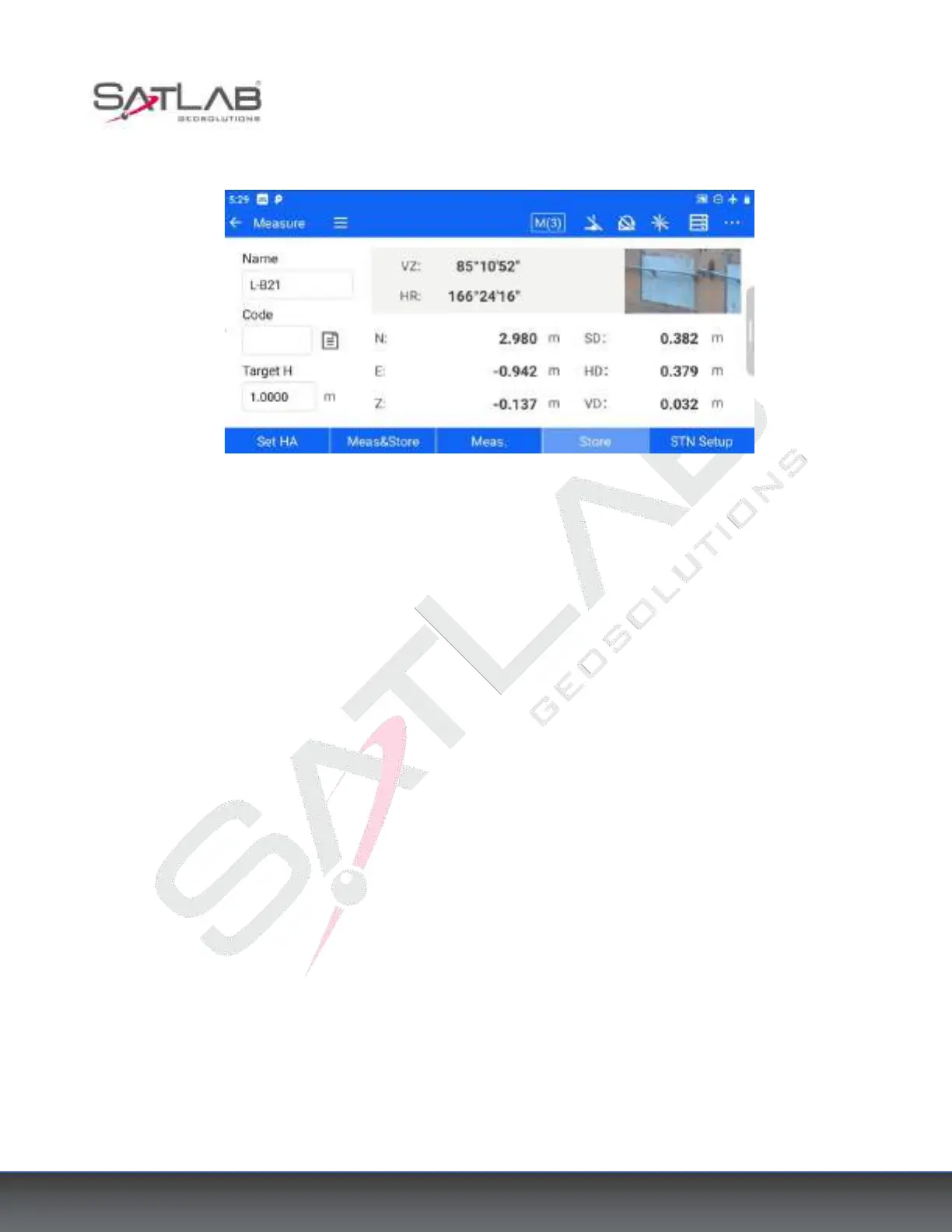 [Store]: When the target point coordinates have been measured, click [Store] to store the target point information