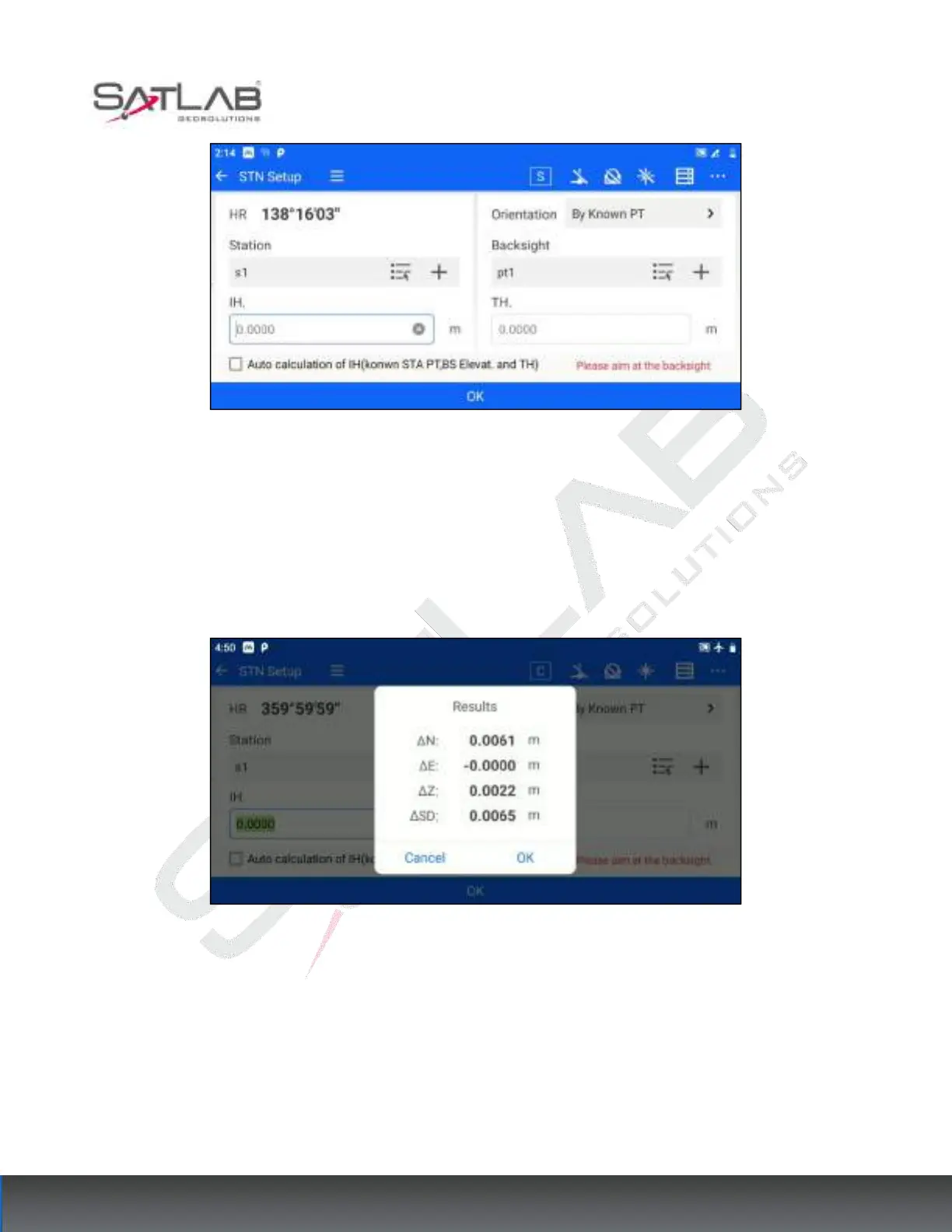 2. Click "OK" to align the Backsight point. At this time, the measurement difference check box will pop up. If