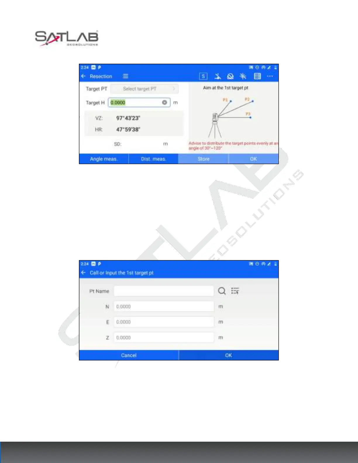 [Cancel]: Cancel to set the target point coordinates and return to the measurement interface.
