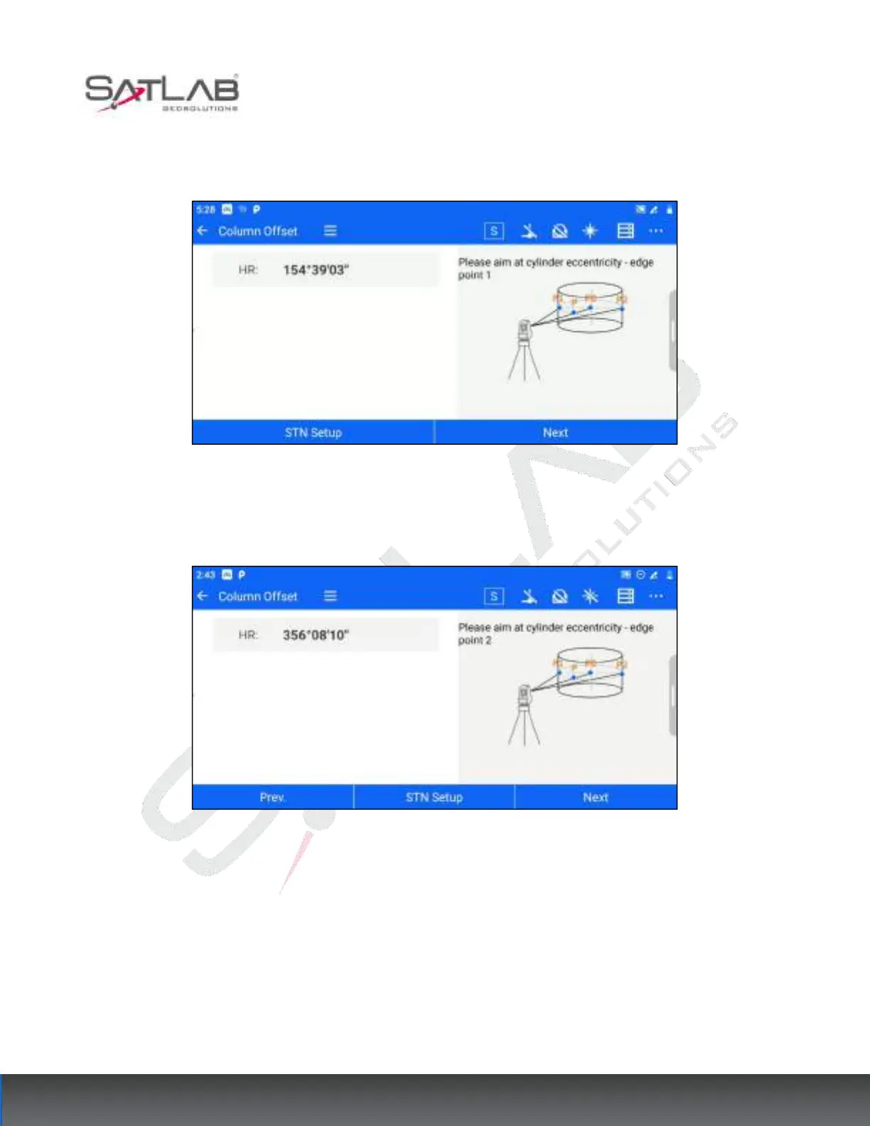 2. Aim at the second point P2 on the edge of the cylinder and click "Next" to get the horizontal angle data while