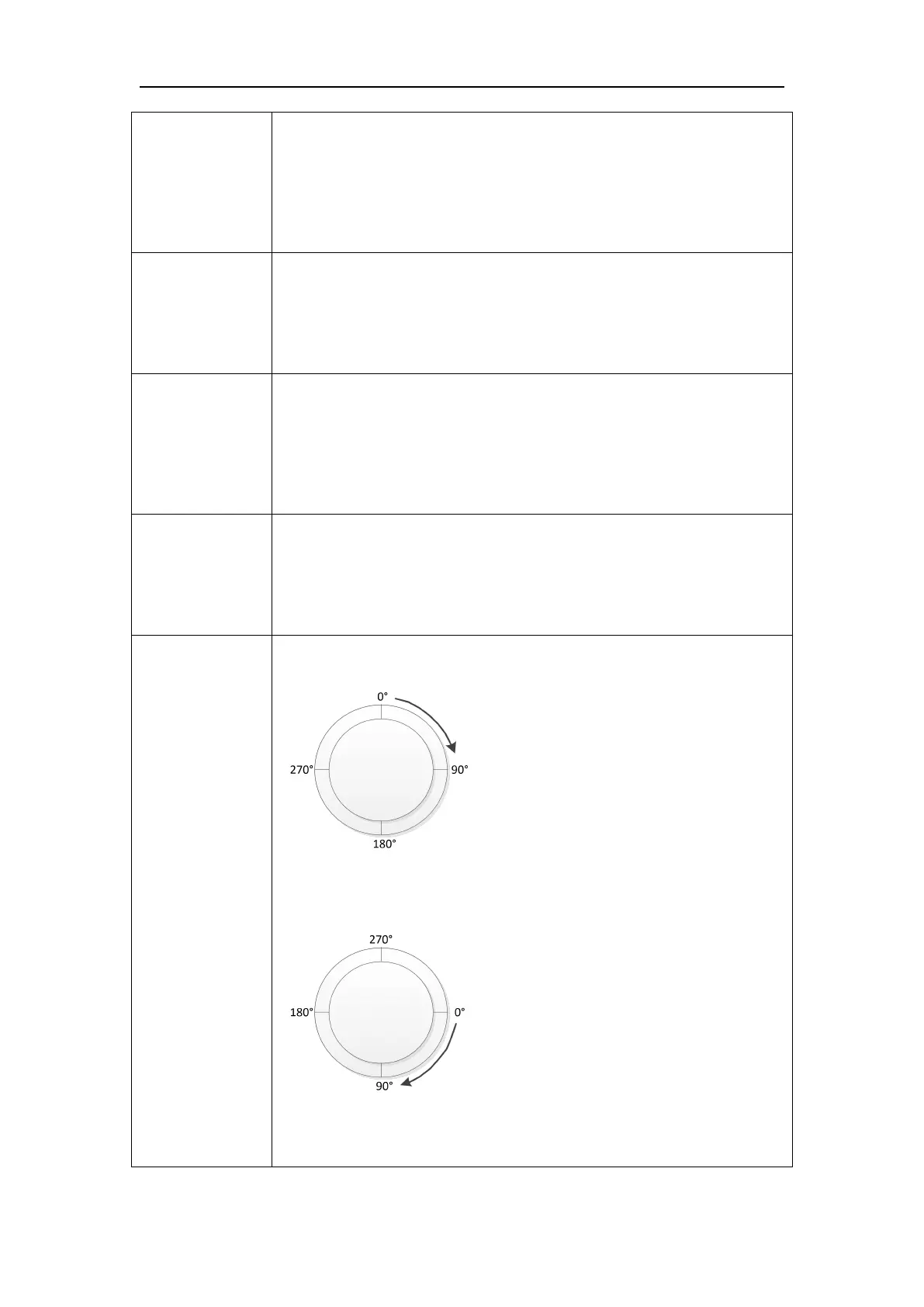 Left: Set horizontal angle to counter-clockwise direction