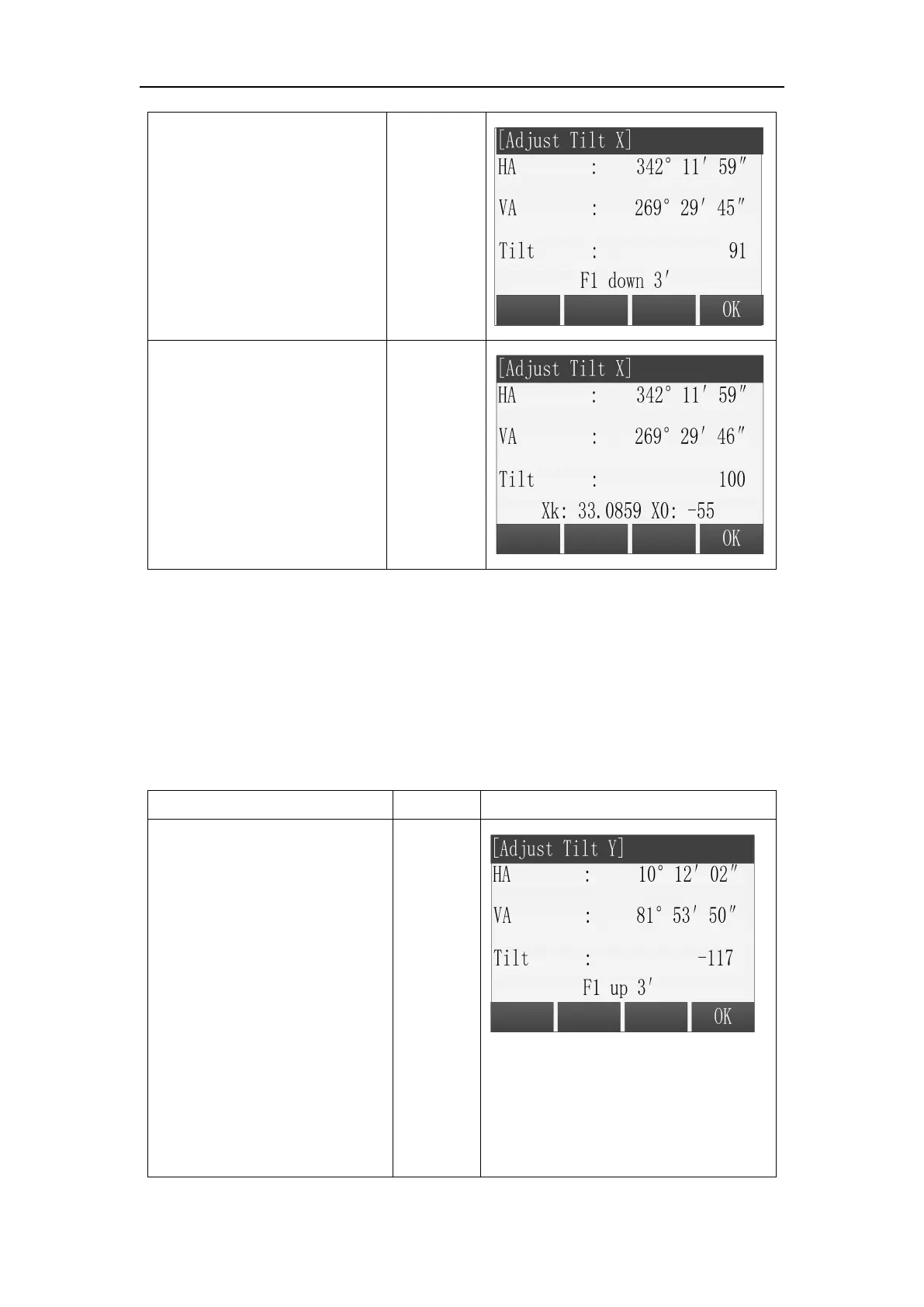 In Tools Menu, choose “1 Adjust”, and then press [F4] to enter “Adjust Tilt Y”.