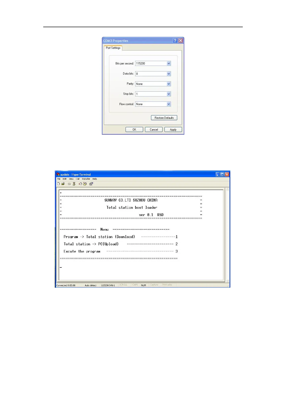3. Press the power key of the instrument in Hyper Terminal , shown as follows:
