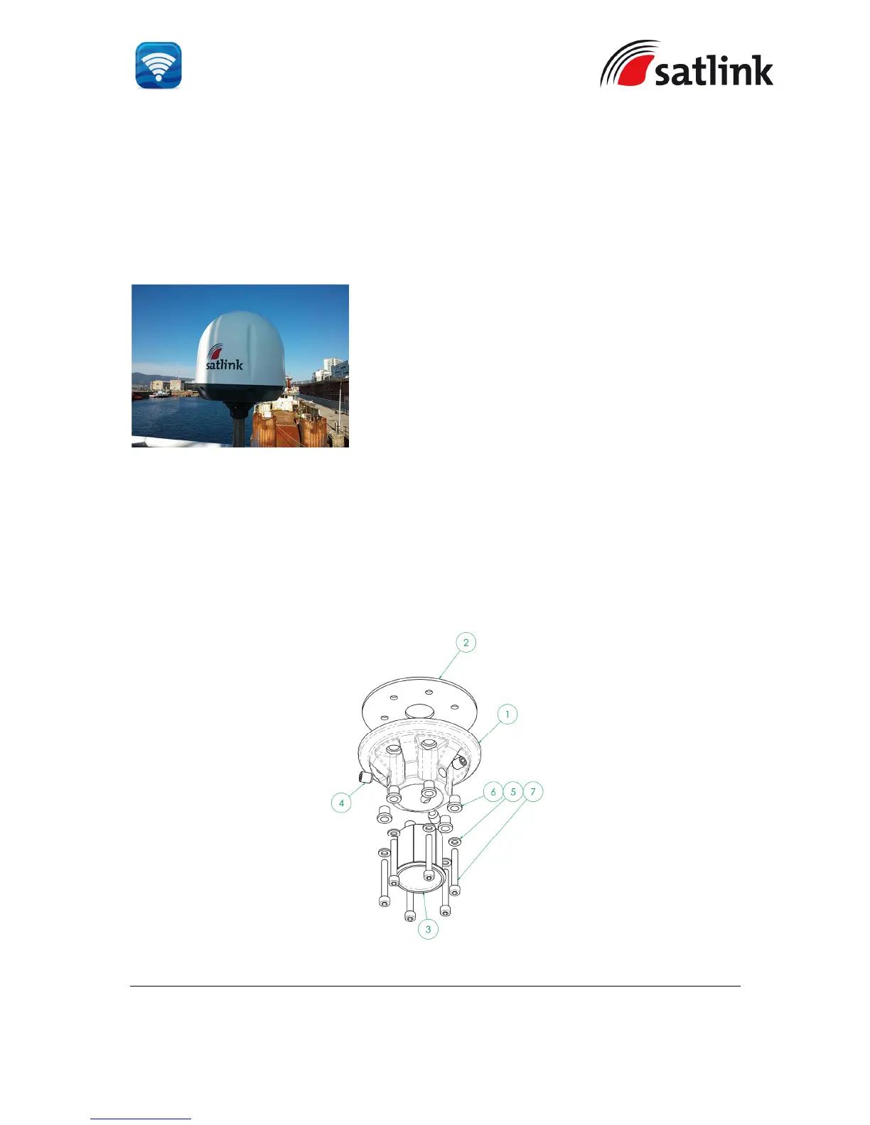 The antenna must be installed using Satlink mounting kit SL40-01937 that includes a flange