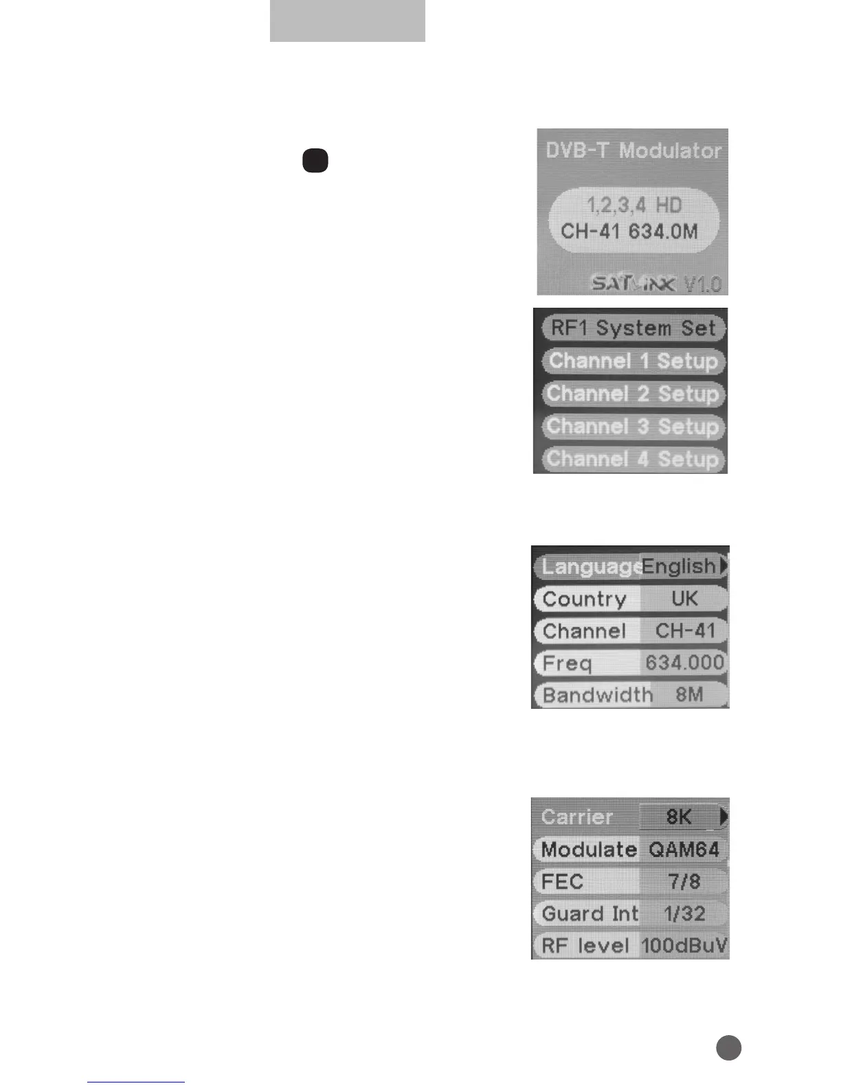 • Freq: frequency setting in range of 50~860MHz, press