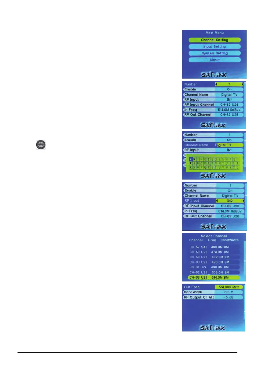 ● Channel Name → press OK to edit channel name with soft
