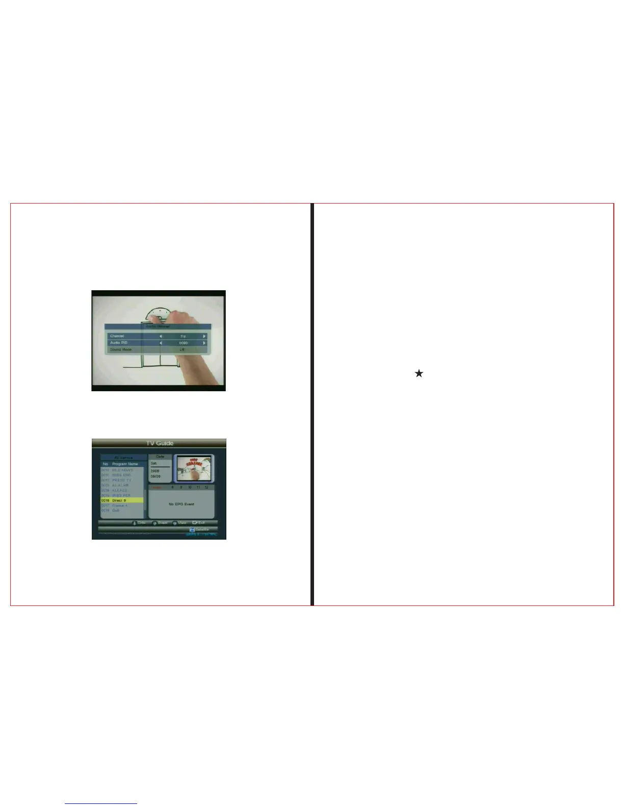 Audio Channel, to change Audio PID and Sound mode.