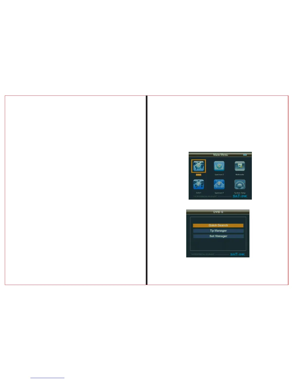 select DVB-S and press OK to enter DVB-S system