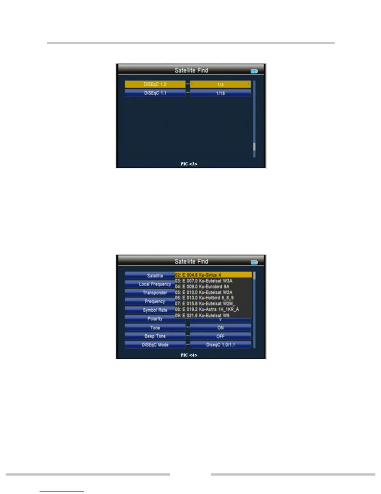 Press ◄►key into the satellite list. Use ▲▼ key to move