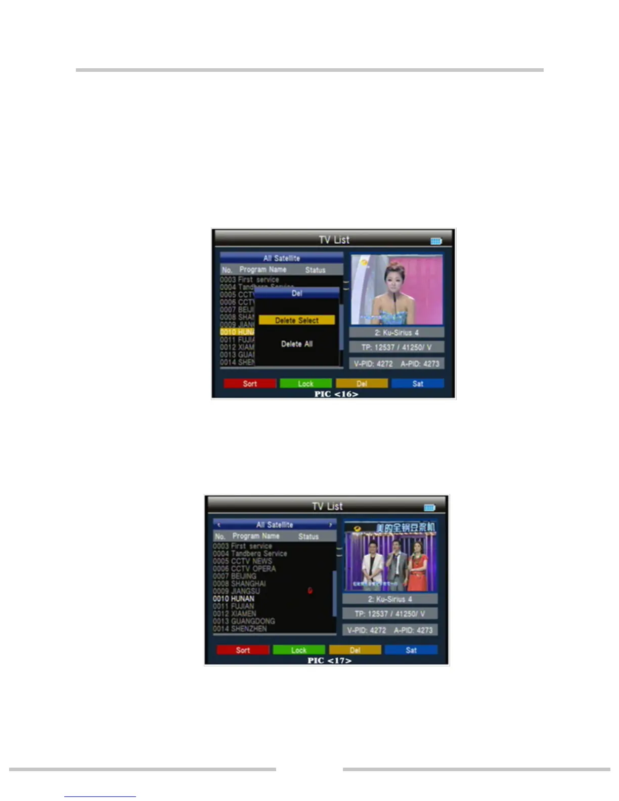 Press blue key then press ◄► key to select program list of the