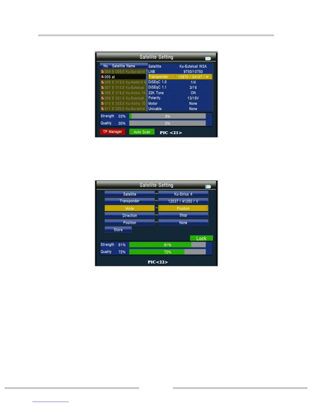 If we select DiSEqC1.2/USALS, press ok into the motor inter-