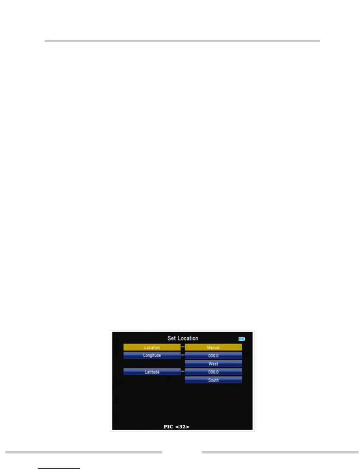 Press ◄► or ok key to set location longitude or latitude