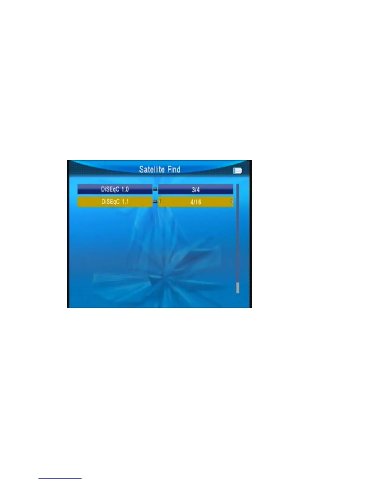 Press◄►keytosettheporttypediseqc1.0/1.1orUnicable