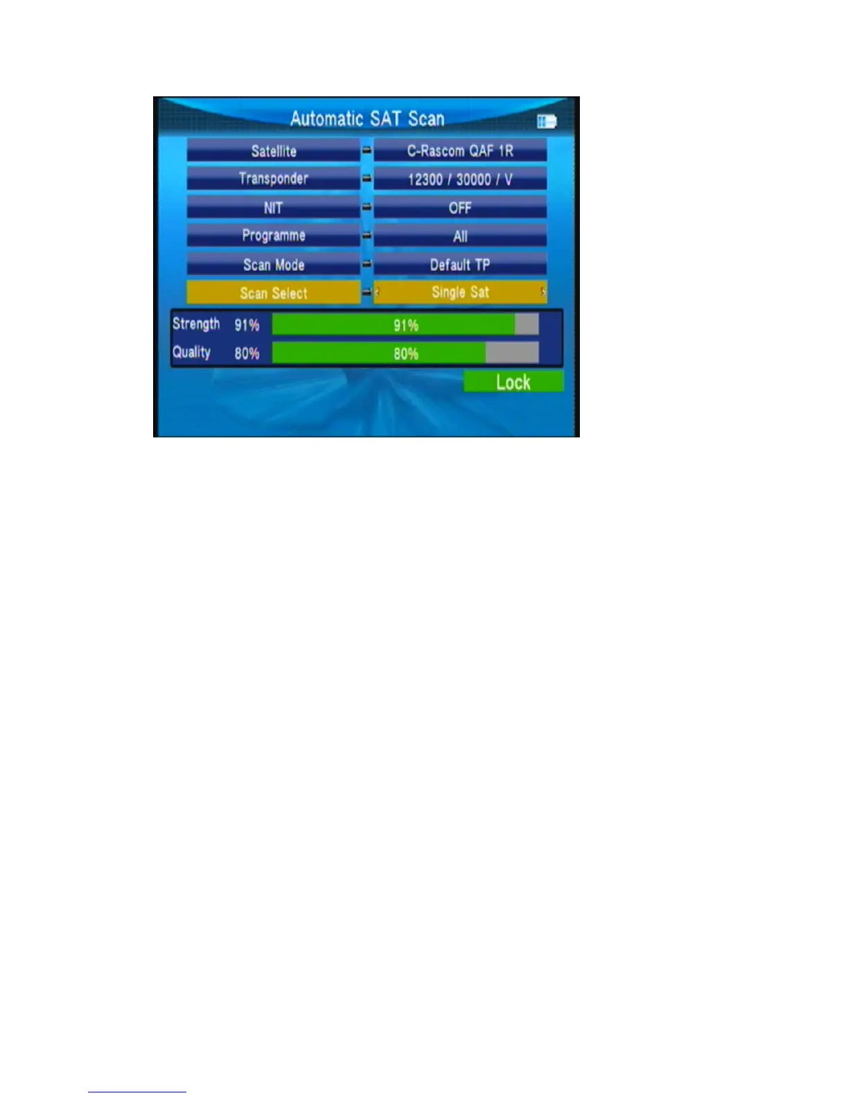 ○ Scan Select: scan all satellites of selected or the current satellite.