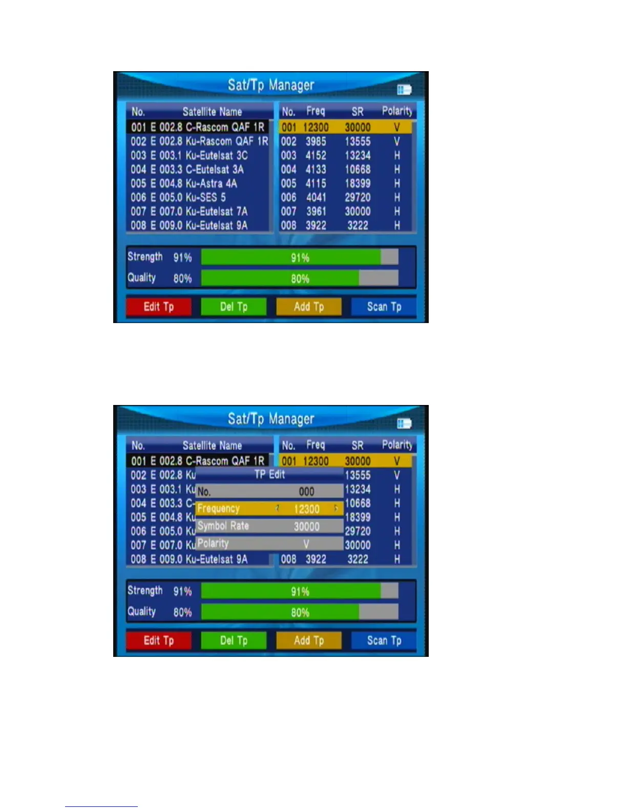 Press red key to edit satellite