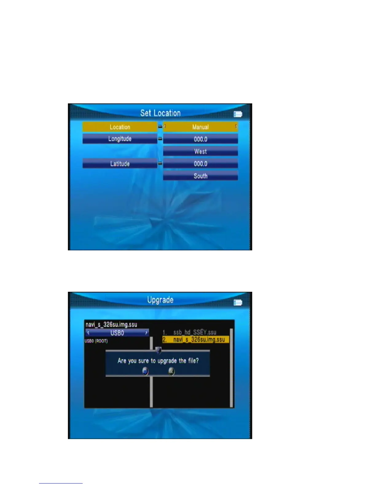 Press ◄► or ok key to set location longitude or latitude