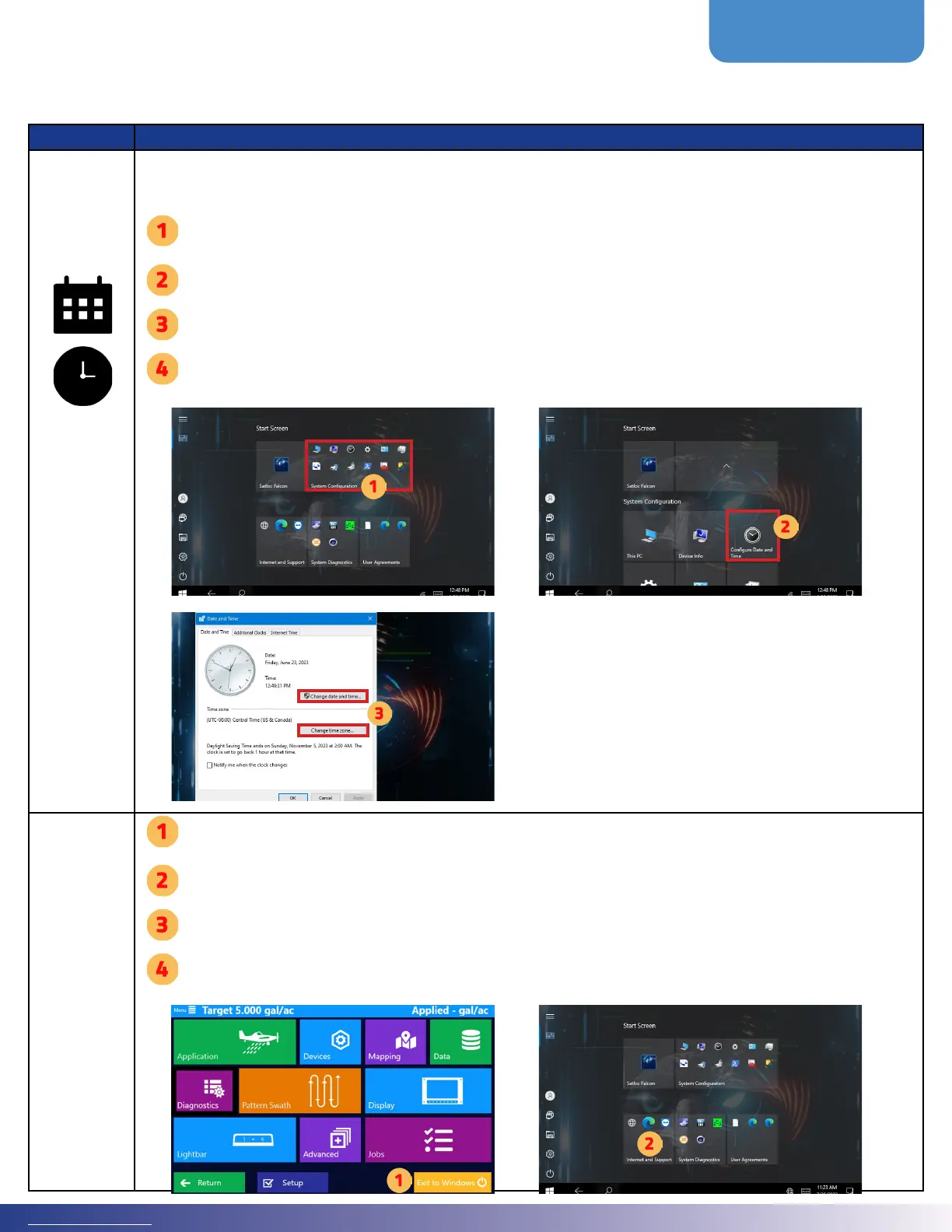 Falcon/Falcon Pro is set to the default date and time in the Windows operating soware. Setting the time is