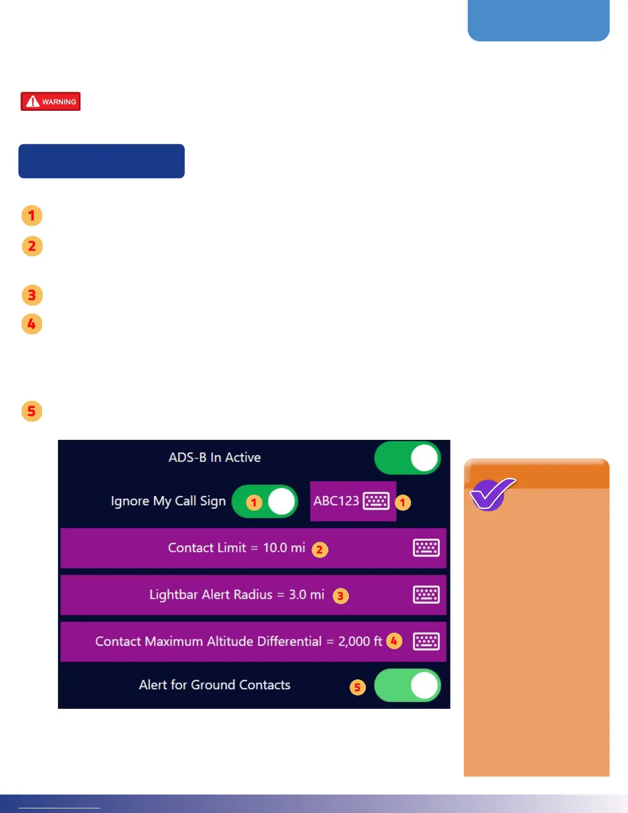 Tap ‘Contact Limit’ to set contact distance limit. e ADS-B device will receive air-to-air contacts in your immediate area