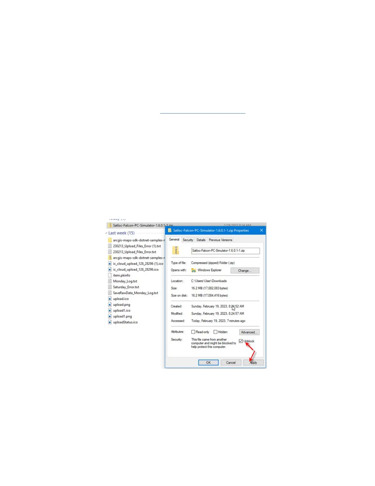b. On the properties screen, uncheck the “Unblock” check box before extracting and installing.